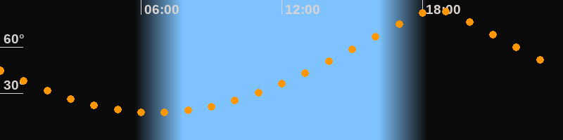 | Höchster Stand (Kulmination) | 18:34 Uhr (h = 83,6°) |