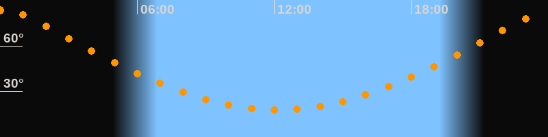 | Höchster Stand (Kulmination) | 00:09 Uhr (h = 83,6°) |
