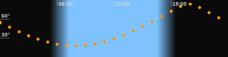 Höchster Stand (Kulmination)19:52 Uhr (h = 83,6°)