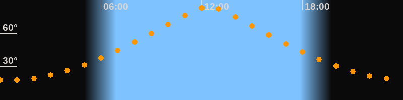 | Höchster Stand (Kulmination) | 12:24 Uhr (h = 83,6°) |