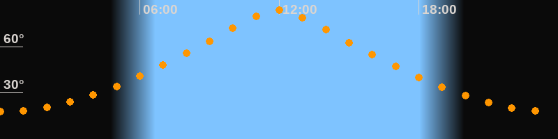 | Höchster Stand (Kulmination) | 11:56 Uhr (h = 83,6°) |