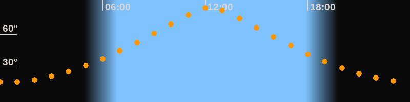 | Höchster Stand (Kulmination) | 12:18 Uhr (h = 83,6°) |