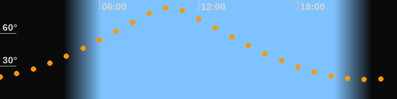 | Höchster Stand (Kulmination) | 10:10 Uhr (h = 83,6°) |