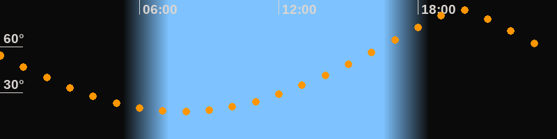 | Höchster Stand (Kulmination) | 19:51 Uhr (h = 83,6°) |