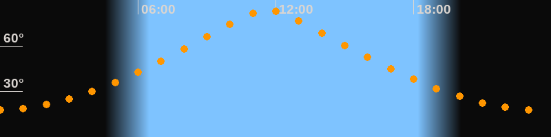 | Höchster Stand (Kulmination) | 11:39 Uhr (h = 83,6°) |