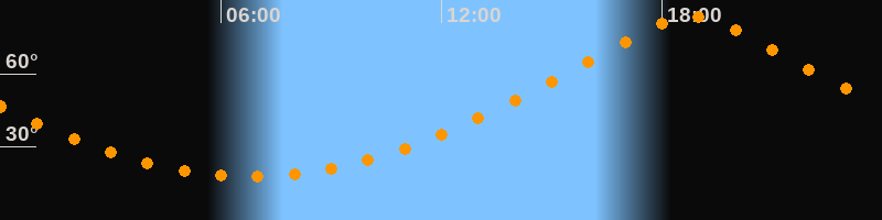 | Höchster Stand (Kulmination) | 18:49 Uhr (h = 83,6°) |
