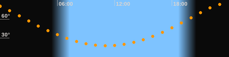 | Höchster Stand (Kulmination) | 23:09 Uhr (h = 83,6°) |
