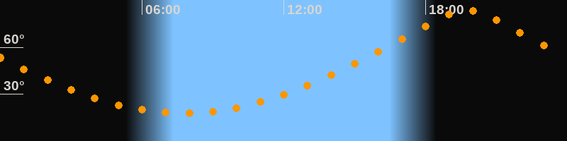 | Höchster Stand (Kulmination) | 19:44 Uhr (h = 83,6°) |