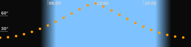 | Höchster Stand (Kulmination) | 11:50 Uhr (h = 83,6°) |