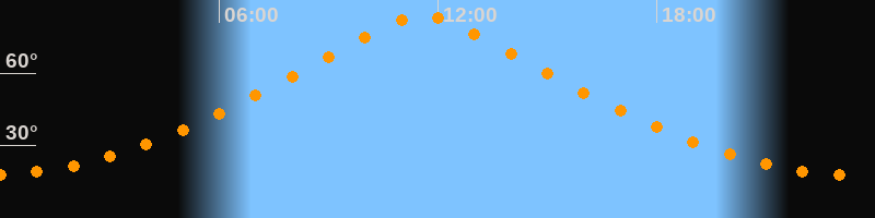 | Höchster Stand (Kulmination) | 11:34 Uhr (h = 83,6°) |