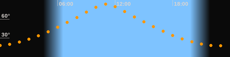 | Höchster Stand (Kulmination) | 11:03 Uhr (h = 83,6°) |