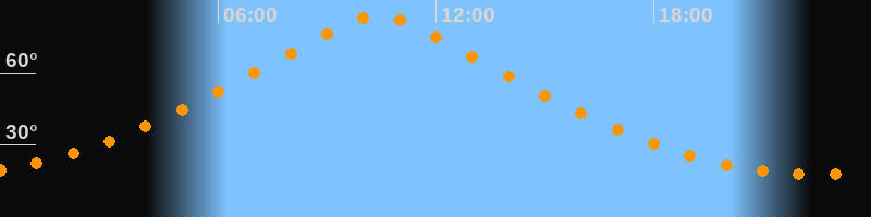 | Höchster Stand (Kulmination) | 10:23 Uhr (h = 83,6°) |