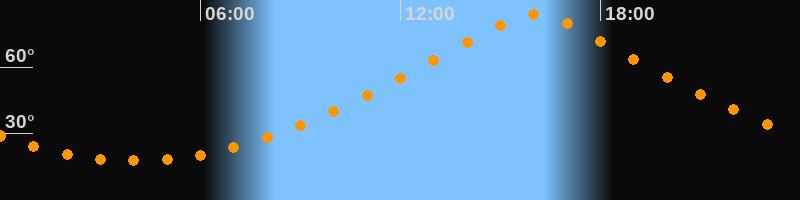 | Höchster Stand (Kulmination) | 16:02 Uhr (h = 83,6°) |