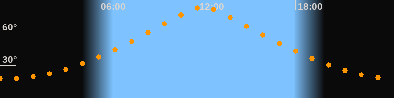 | Höchster Stand (Kulmination) | 12:22 Uhr (h = 83,6°) |