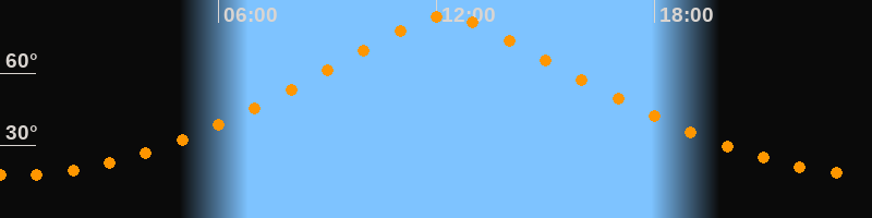 | Höchster Stand (Kulmination) | 12:15 Uhr (h = 83,6°) |