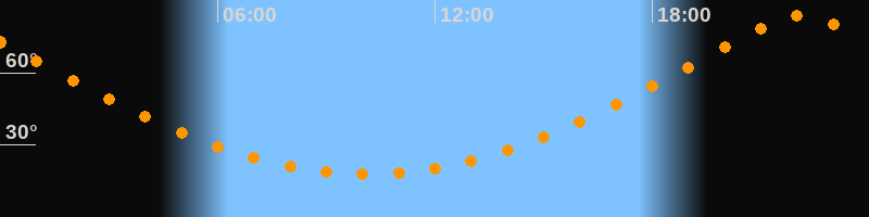 | Höchster Stand (Kulmination) | 22:06 Uhr (h = 83,6°) |