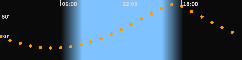 | Höchster Stand (Kulmination) | 17:11 Uhr (h = 83,6°) |