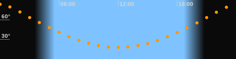 | Höchster Stand (Kulmination) | 23:59 Uhr (h = 83,6°) |