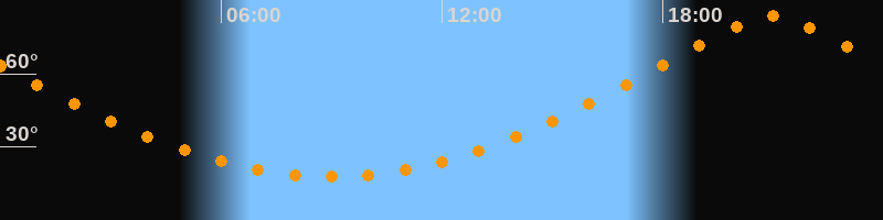 | Höchster Stand (Kulmination) | 20:58 Uhr (h = 83,6°) |
