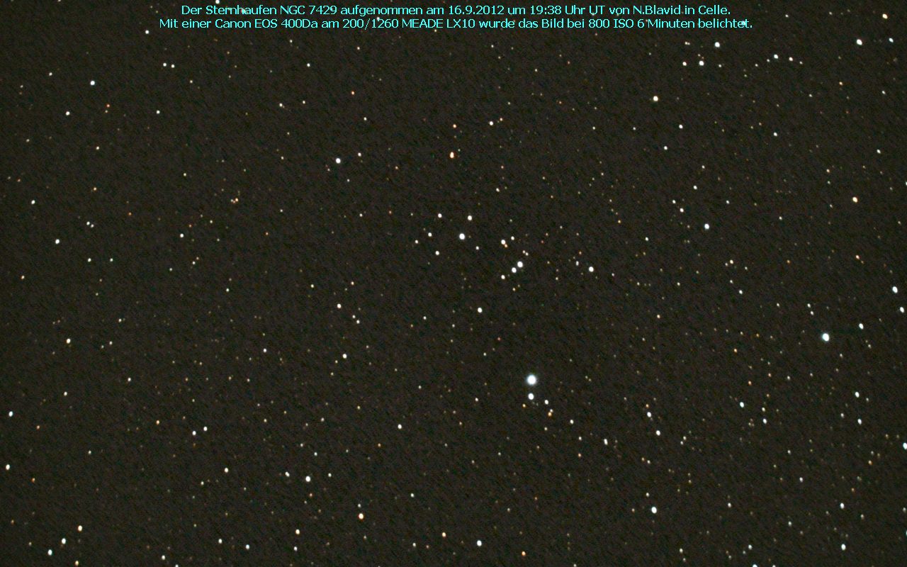 NGC 7429 ist ein ein offener Sternhaufen vom Typ III 2 p. Entdeckt wurde das Objekt am 29.September 1829 von John Herschel.