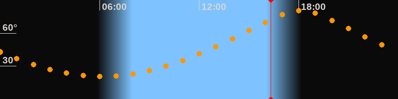 | Höchster Stand (Kulmination) | 18:07 Uhr (h = 80,8°) |