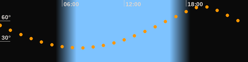 | Höchster Stand (Kulmination) | 19:36 Uhr (h = 80,8°) |