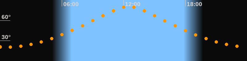 | Höchster Stand (Kulmination) | 12:29 Uhr (h = 80,8°) |