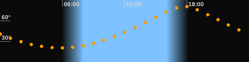 | Höchster Stand (Kulmination) | 17:44 Uhr (h = 80,8°) |