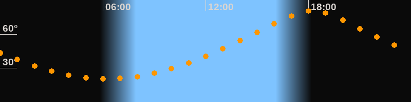 | Höchster Stand (Kulmination) | 18:13 Uhr (h = 80,8°) |