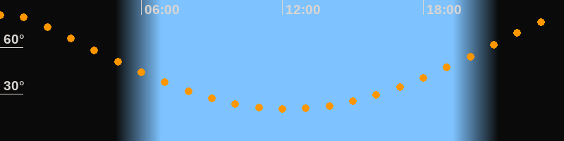 | Höchster Stand (Kulmination) | 00:13 Uhr (h = 80,8°) |