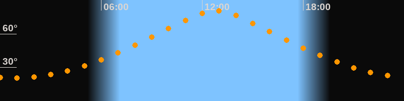 | Höchster Stand (Kulmination) | 12:48 Uhr (h = 80,8°) |