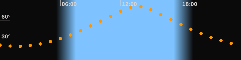 | Höchster Stand (Kulmination) | 13:39 Uhr (h = 80,8°) |