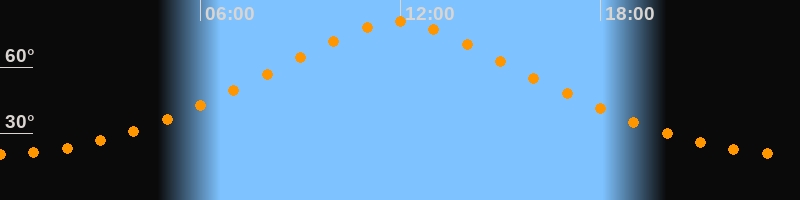 | Höchster Stand (Kulmination) | 11:53 Uhr (h = 80,8°) |