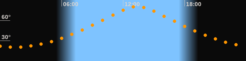 | Höchster Stand (Kulmination) | 13:23 Uhr (h = 80,8°) |