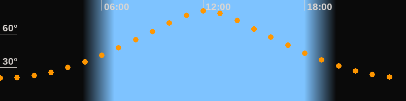 | Höchster Stand (Kulmination) | 12:08 Uhr (h = 80,8°) |