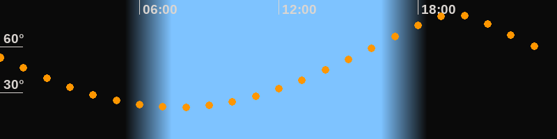 | Höchster Stand (Kulmination) | 19:34 Uhr (h = 80,8°) |