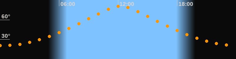 | Höchster Stand (Kulmination) | 12:14 Uhr (h = 80,8°) |