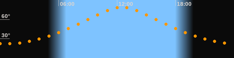 | Höchster Stand (Kulmination) | 12:30 Uhr (h = 79,3°) |