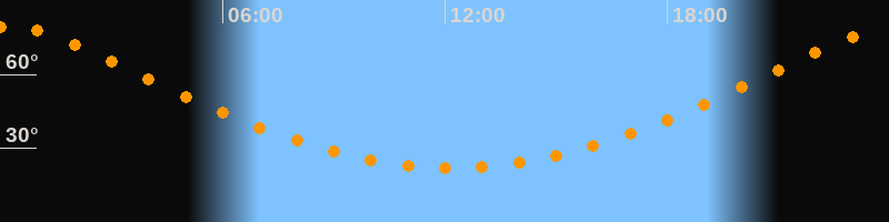 | Höchster Stand (Kulmination) | 00:12 Uhr (h = 79,3°) |