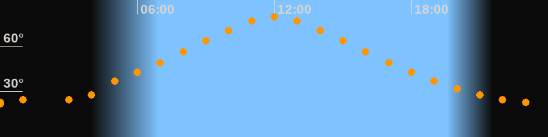 | Höchster Stand (Kulmination) | 11:59 Uhr (h = 79,3°) |
