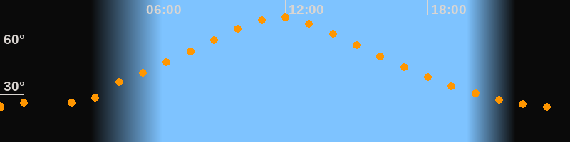 | Höchster Stand (Kulmination) | 11:46 Uhr (h = 79,3°) |