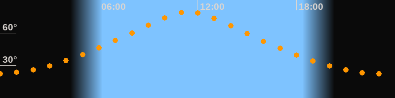 | Höchster Stand (Kulmination) | 11:27 Uhr (h = 79,3°) |