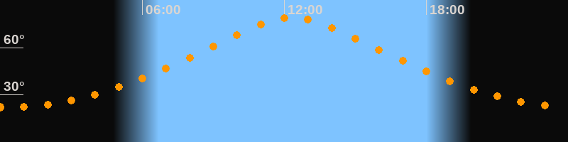 | Höchster Stand (Kulmination) | 12:20 Uhr (h = 79,3°) |
