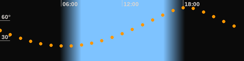 | Höchster Stand (Kulmination) | 18:20 Uhr (h = 79,3°) |