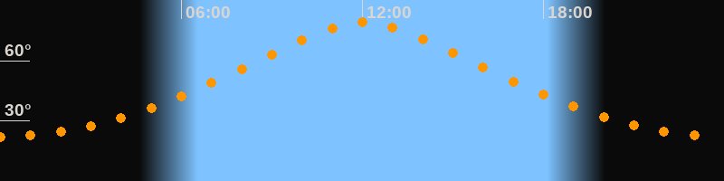 | Höchster Stand (Kulmination) | 12:03 Uhr (h = 79,3°) |