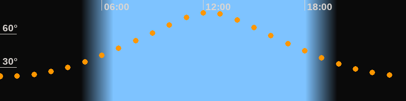 | Höchster Stand (Kulmination) | 12:19 Uhr (h = 79,3°) |
