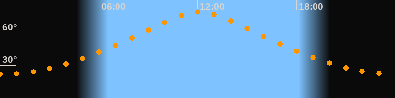 | Höchster Stand (Kulmination) | 12:05 Uhr (h = 79,3°) |