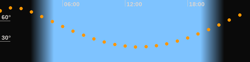 | Höchster Stand (Kulmination) | 01:22 Uhr (h = 79,3°) |