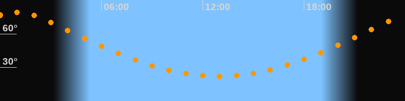 | Höchster Stand (Kulmination) | 00:54 Uhr (h = 79,3°) |