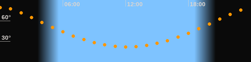| Höchster Stand (Kulmination) | 00:07 Uhr (h = 79,3°) |